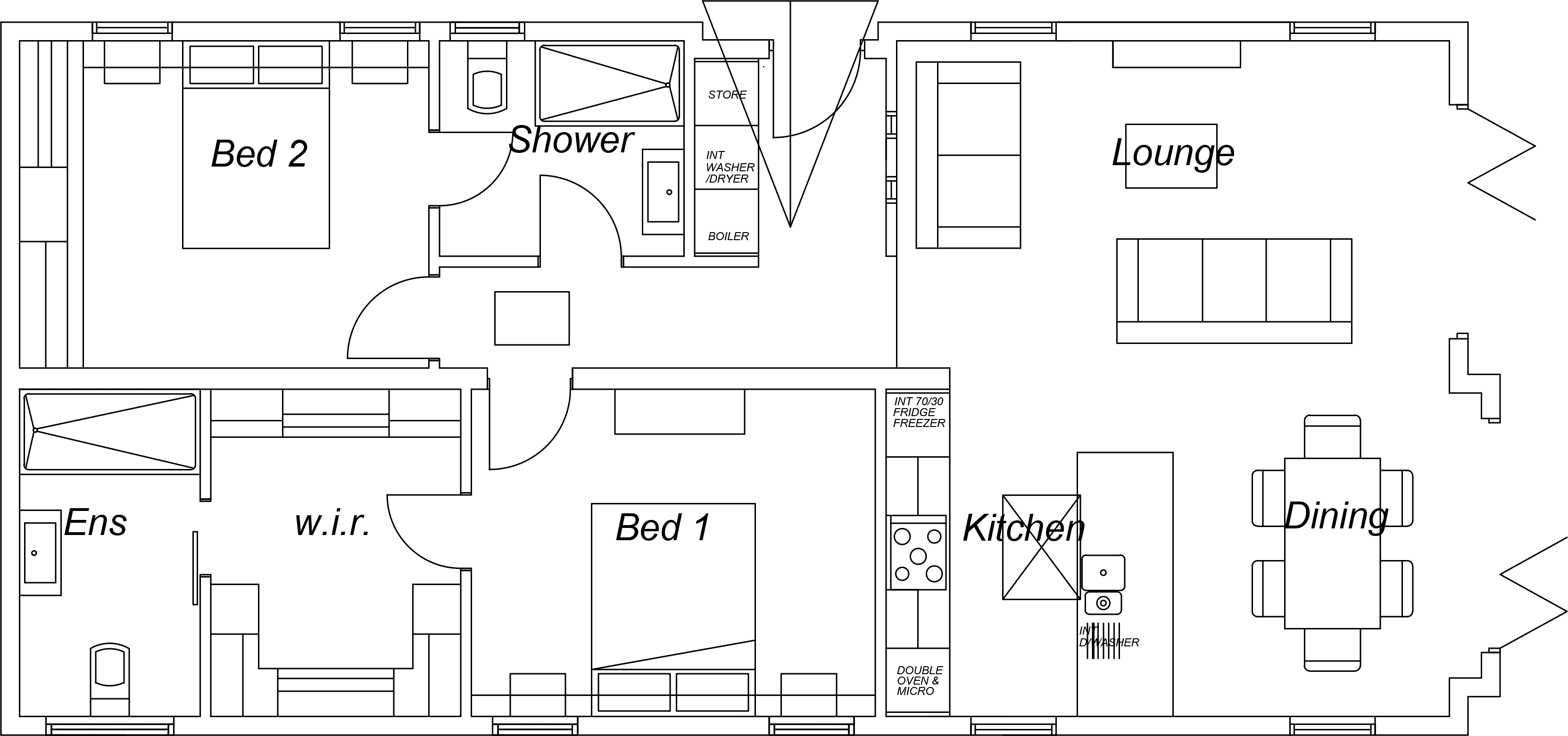 Step into The Beech Lodge, where modern design meets luxurious comfort in a spacious, light-filled environment. The distinctive peaked glass frontage and elongated windows create a seamless connection to the outdoors, while the vaulted ceiling enhances the sense of space inside. The sleek lounge features modern furnishings and a floating fireplace providing a perfect spot for relaxation. The elegant dining area, equipped with a stylish table and French doors, extends your living space outdoors, making it perfect for alfresco dining. Whether for peaceful escapes or lively gatherings, The Beech Lodge offers a sophisticated blend of elegance and practicality.