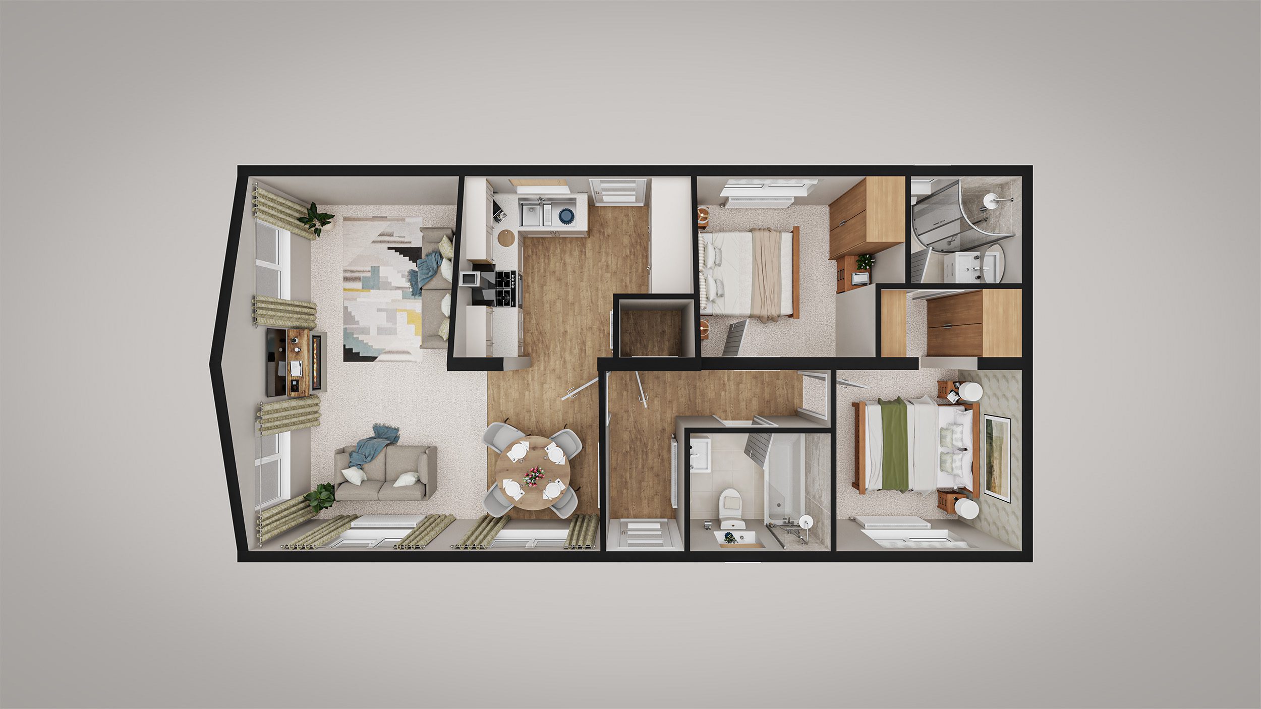 The Meadow is a beautifully designed 2-bedroom home that seamlessly blends style and comfort. With a spacious master suite featuring an en-suite and walk-in wardrobe, and a generously sized second bedroom, this home offers both luxury and versatility. The open-plan living area is bright and airy, while the modern kitchen boasts premium appliances and ample space. With high-quality finishes and a contemporary design, The Meadow provides a perfect balance of elegance, functionality, and relaxation.
